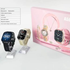 A58 Smartwatch & Jewelry Set হল একটি আধুনিক স্মার্টওয়াচ যা মেয়েদের জন্য ডিজাইন করা হয়েছে, এবং এতে একটি স্টাইলিশ জুয়েলারি সেটও রয়েছে। এই স্মার্টওয়াচের উন্নত প্রযুক্তি এবং ফ্যাশনেবল ডিজাইন একত্রে আপনাকে দিবে স্টাইল এবং স্বাস্থ্যের প্রতি সচেতনতা। স্মার্টওয়াচে হার্ট রেট মনিটর, স্টেপ কাউন্টার, স্লিপ ট্র্যাকারসহ নানা ফিচার রয়েছে, যা আপনাকে সুস্থ এবং সক্রিয় রাখবে। জুয়েলারি সেটটি আপনার দৈনন্দিন বা বিশেষ দিনের জন্য পারফেক্ট ফিট।