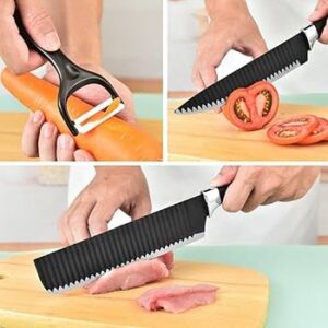 ৬টি ছুরি সেট: প্রতিটি ছুরি বিশেষভাবে ডিজাইন করা হয়েছে যাতে আপনি সহজেই কুকিংয়ের সব ধরনের কাজ করতে পারেন। এই সেটে রয়েছে: